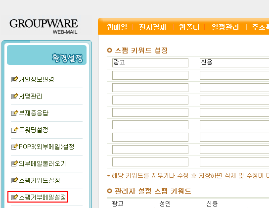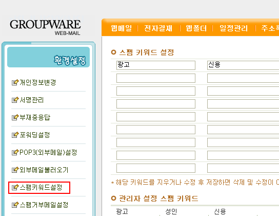À¥¸ÞÀÏ¿¡ Á¢¼Ó ÈÄ »ó´Ü¿¡ [ȯ°æ¼³Á¤] -> [½ºÆÔŰ¿öµå¼³Á¤] ¸Þ´º¿¡ µé¾î °©´Ï´Ù. |