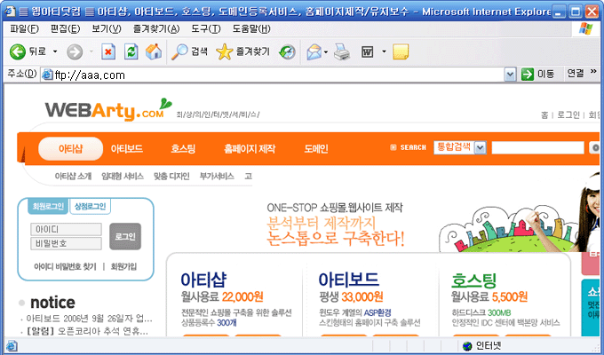 ÁÖ¼Ò ÀԷ¶õ¿¡ ÀÚ½ÅÀÇ µµ¸ÞÀÎ(¿¹ : ftp://aaa.com)À» ÀÔ·ÂÇÕ´Ï´Ù.