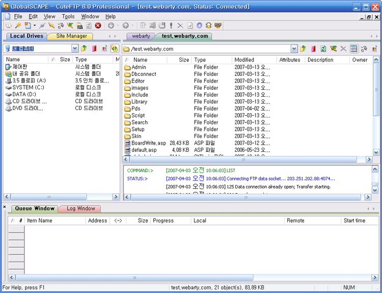 Cute FTP ÇÁ·Î±×·¥À» ½ÇÇà½ÃŲ´Ù.