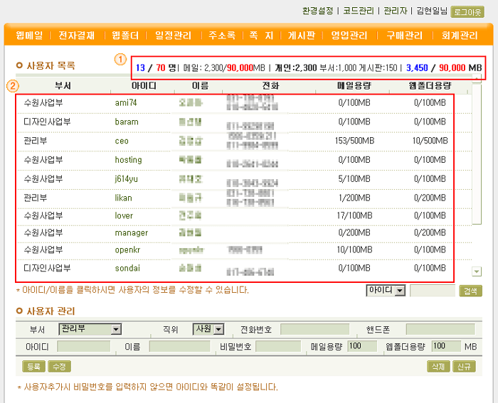 À¥¸ÞÀÏ¿¡ Á¢¼ÓÀÌ µÇ¸é ¿ìÃø »ó´Ü¿¡ [°ü¸®ÀÚ] ¸Þ´º¸¦ Ŭ¸¯ÇÏ½Ã°í °ü¸®ÀÚ È¸éÀ¸·Î Á¢¼ÓÇÕ´Ï´Ù. |