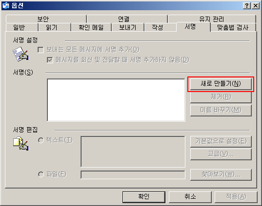 ¼­¸í ¸Þ´º¿¡¼­ [»õ·Î ¸¸µé±â] ¹öưÀ» Ŭ¸¯ÇÕ´Ï´Ù.